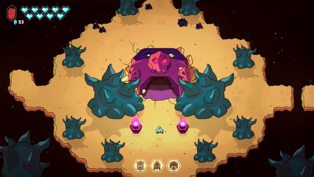 Από τη μία πλευρά βρίσκουμε το κλασικό twin-stick shooting που θυμίζει πιο arcade παιχνίδια, ενώ από την άλλη η δομή της εξερεύνησης, η πρόοδος του σκάφους μας και η φιλοσοφία των dungeons συνθέτουν μια ιδέα που μας κρατάει αμείωτο το ενδιαφέρον. Η ιδέα αυτή, αν και αρχικά μπορεί να ακούγεται ασυνήθιστη, αποδεικνύεται ιδιαίτερα αποτελεσματική. Η SoulGame Studio καταφέρνει να δημιουργήσει ένα gameplay που βασίζεται στην εξερεύνηση, στις μάχη και στη σταδιακή ενίσχυση του οχήματός μας, χωρίς να μας κουράζει με κπαποια περιττή ιστορία ή διάλογο.